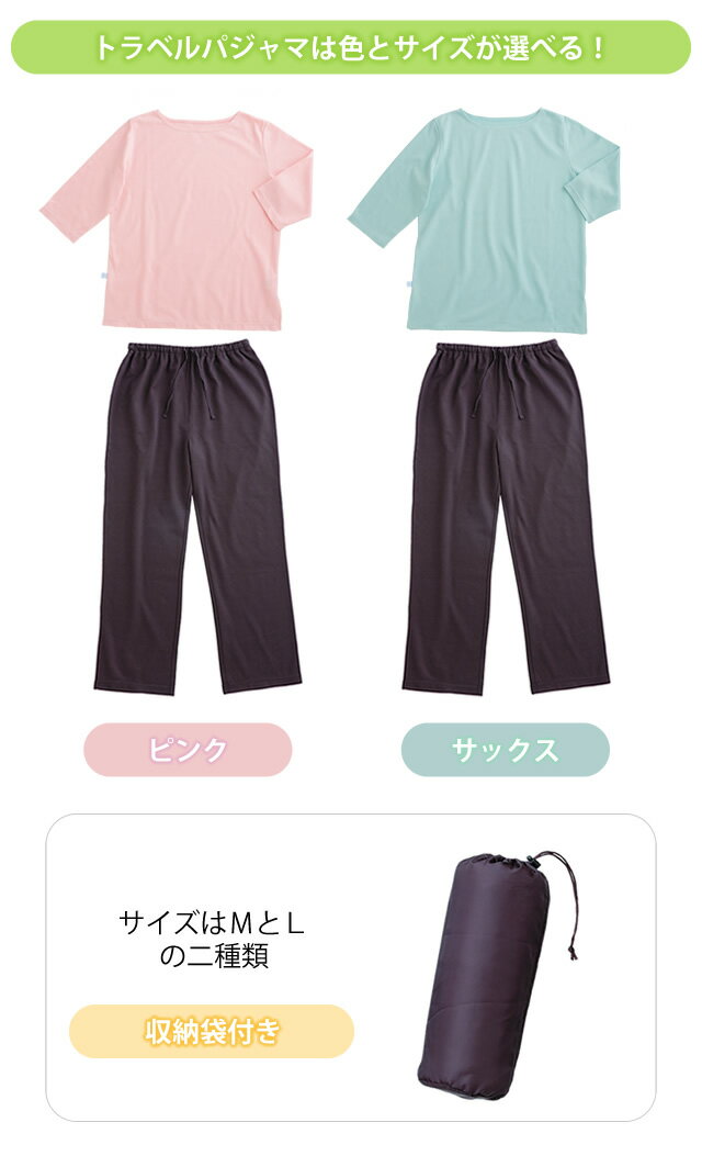 おやすみポイント! 眠り始めにかいた汗をすみやかに乾かすと深い眠りをサポートできます! このシリーズの他商品はこちら→ 出張パジャマ(男性用) / ビーズ仮眠枕(男性用)→ 枕にもなる5WAYケット(女性用) / おやすみマスク 品番 MINP20 適応サイズ (M)バスト/約79〜87cm、ウエスト/約64〜70cm(L)バスト/約86〜94cm、ウエスト/約68〜76cm 商品サイズ (M)上着丈/約65cm、胸囲/約98cm、腰囲/約98cmパンツ丈/約96cm、股下/約65cm(L)上着丈/約68cm、胸囲/約102cm、腰囲/約102cmパンツ丈/約99cm、股下/約68cm 品質 表面/ポリエステル 100% (吸水速乾)、裏面/綿 100% 付属品 収納ケース(約25cm×10cm) 原産国 中国 納品目安 営業日15時までのご注文で即日発送予定。