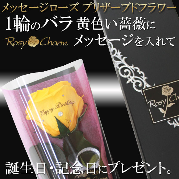 メッセージローズ プリザーブドフラワー (黄色のバラ)〜1輪のバラ〜 メッセージローズ プリザーブドフラワーは、1輪のバラの花びらに、メッセージが入れられるバラの贈り物です。
