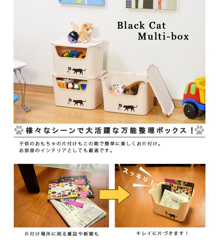 【黒猫のモチーフBOX】マルチボックス 3個組ケーブル収納ボックス収納BOX 黒猫チェスト 3段キャビネットボックス深型2個組